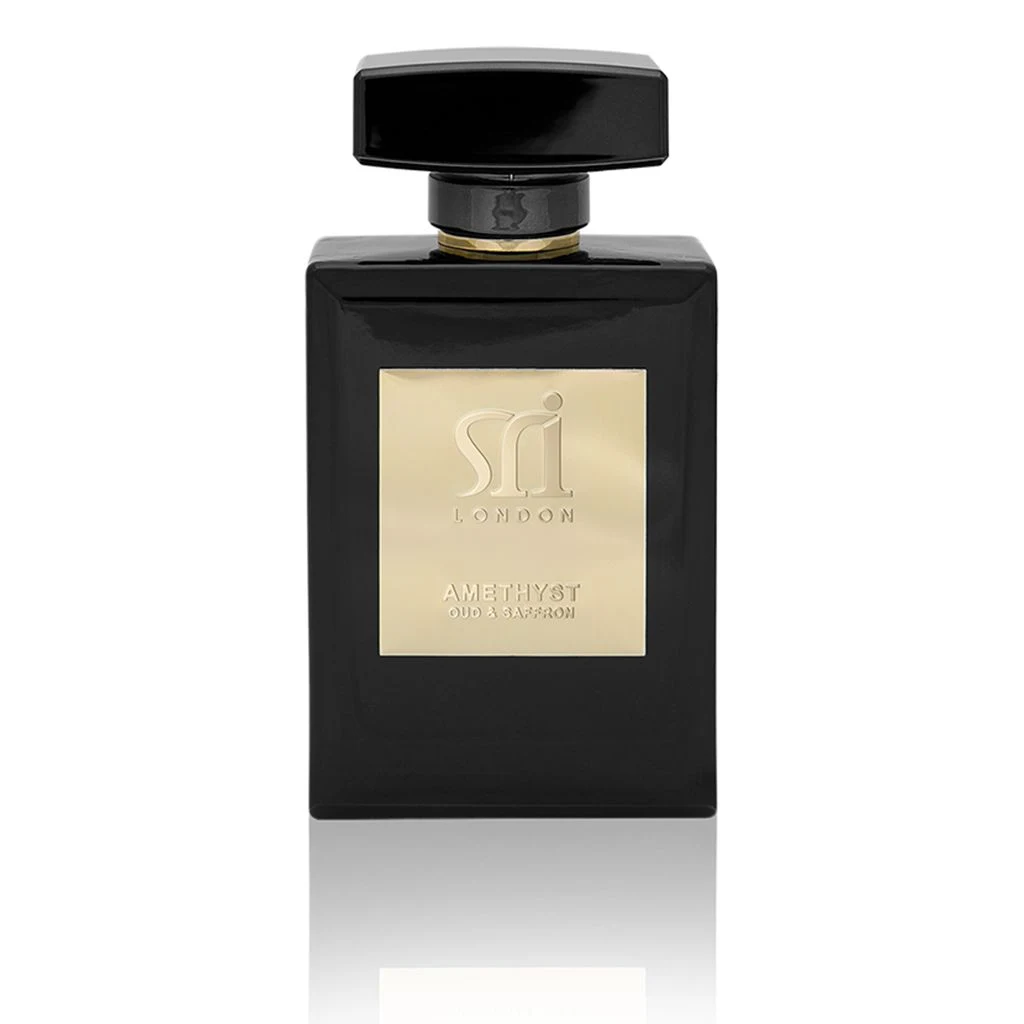 Amethyst Oud & Saffron de Sri London est une fragrance de la famille olfactive florale orientale, pour homme et femme. Lancée en 2018, cette composition dévoile une note de tête citronnée qui laisse place à un cœur composé de rose, jasmin, violette, poivre rose et racine de iris. La traîne s'installe sur une base d'ambre, safran, cèdre, bois d'oud et mousse.