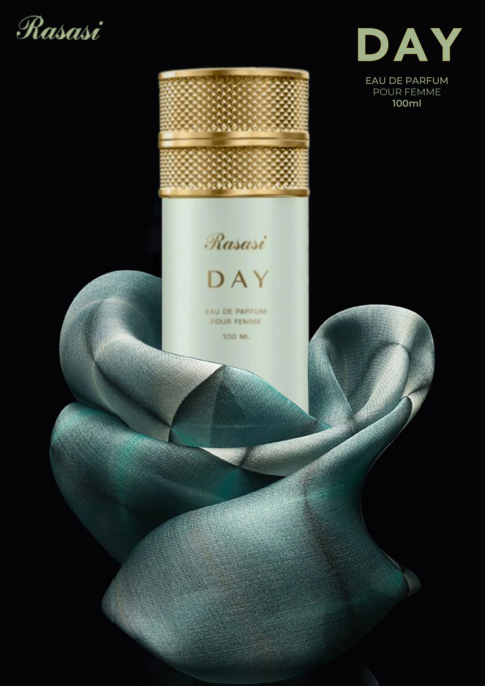 Day de Rasasi est une fragrance de la famille olfactive fleurie musquée boisée pour femme. Lancée en 2023, cette composition dévoile dans ses notes de tête poivre rose, framboise et bergamote ; au cœur, des notes boisées, cèdre et rose ; et en fond, patchouli et ambre.