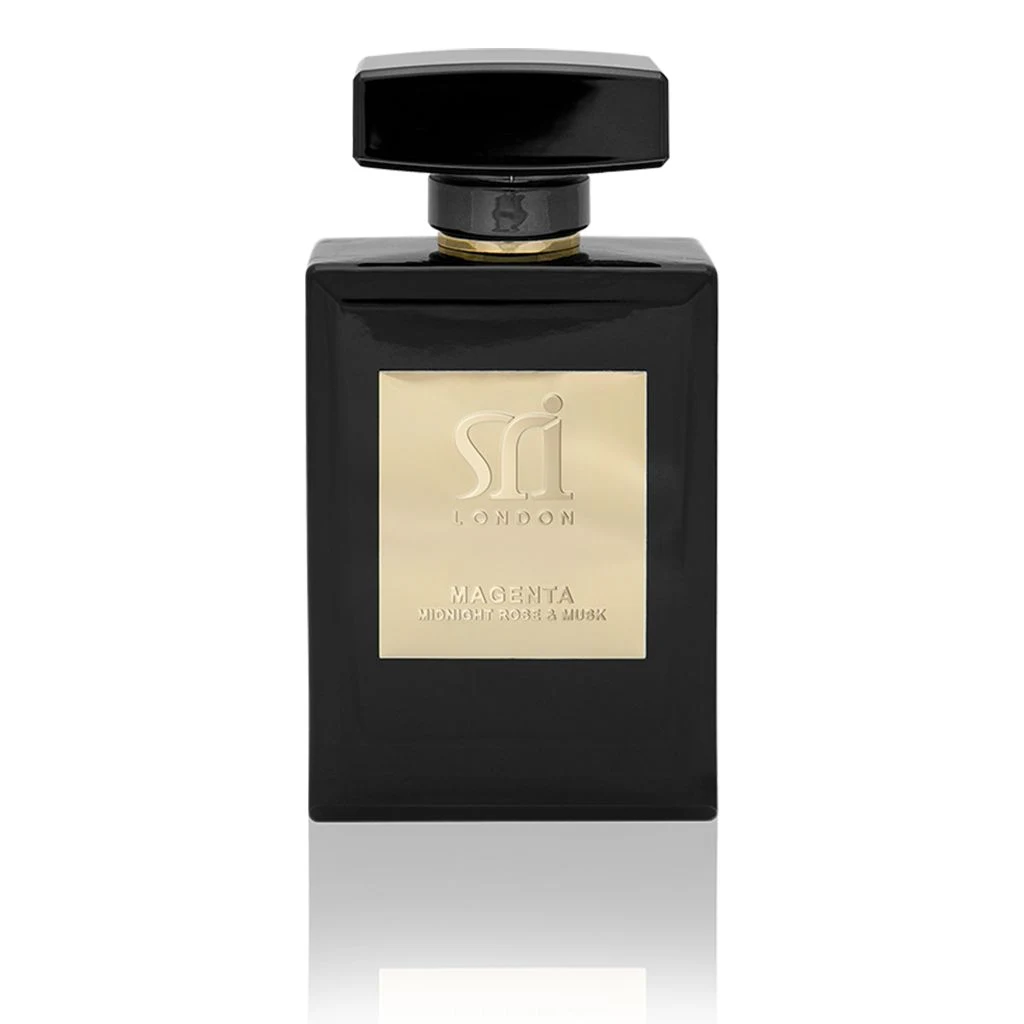Magenta Midnight Rose & Musk de Sri London est une fragrance de la famille olfactive musquée florale boisée, pour homme et femme. Lancée en 2018, cette composition dévoile une ouverture citronnée qui laisse place à un cœur composé de jasmin, violette, rose, poivre rose et racine de iris. La base s'assied sur du musc, du cèdre, du bois d'oud, de l'ambre et du safran.