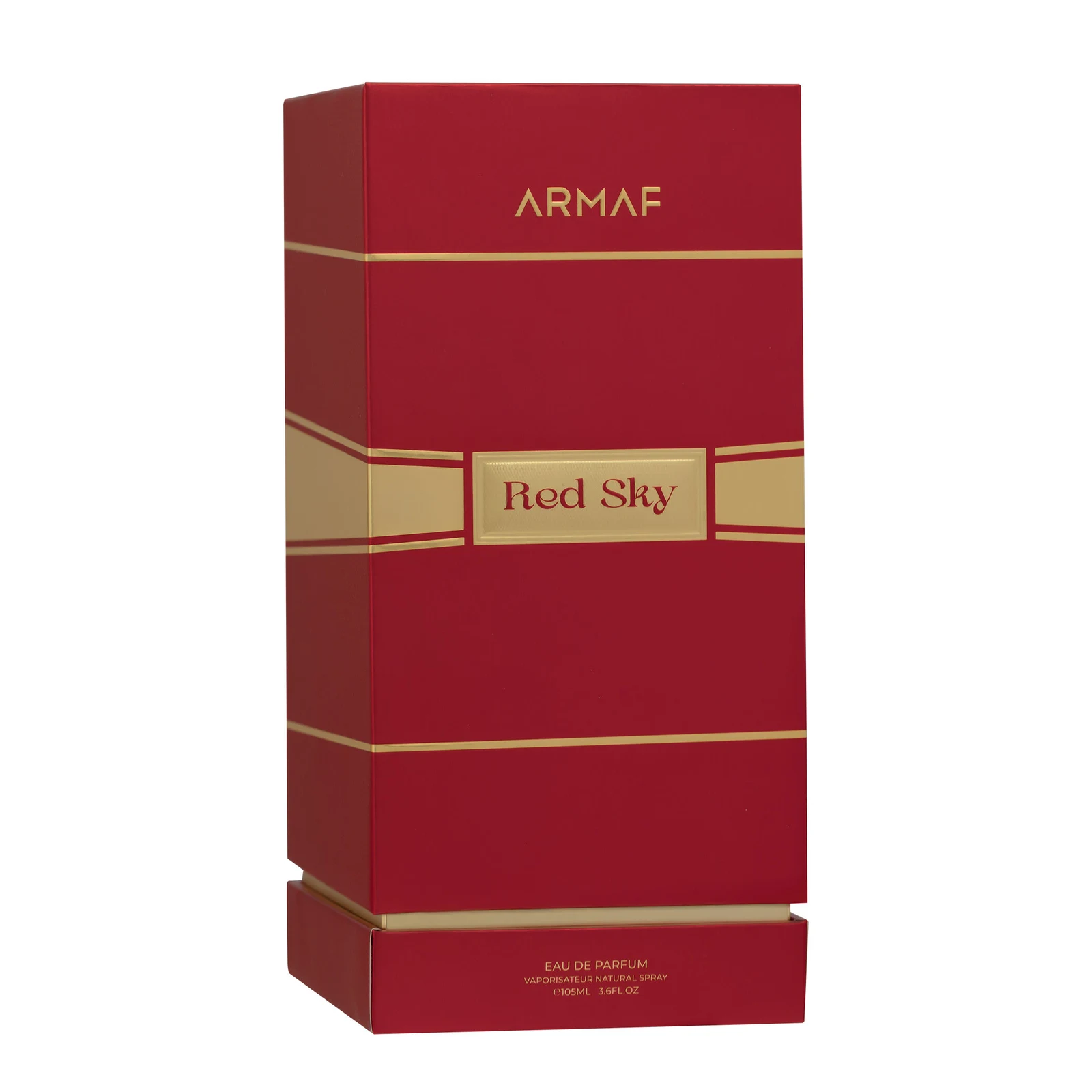 Red Sky d'Armaf est une fragrance de la famille olfactive chypre florale pour femmes. Cette création, lancée en 2024, déploie une pyramide olfative où les notes de tête allient la fraîcheur de la bergamote à la touche distinctive de l'amande amère. Le cœur de la composition révèle une floraison exotique et romantique grâce à l'ylang-ylang, au rose et à la pivoine. Pour finir, les notes de fond offrent une chaleur enveloppante avec la présence de la coumarine et de la vanille.