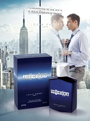 Reflexion Men de Louis Varel est une fragrance masculine à la famille olfactive boisée épicée. Les notes de tête sont le citron, la lime acide, la mandarine, la bergamote, le melon, la pomme et l'anis ; les notes de cœur sont le cardamome, le coriandre, le géranium, le patchouli, le santal et la sauge ; les notes de fond sont l'ambre et la muscade.